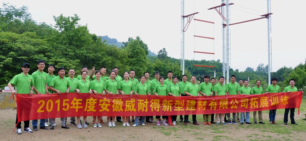 拓有限人生,展無(wú)限未來!2015年6月7號(hào),安徽威耐得新型建材有限公司在蚌埠禾泉農(nóng)莊對(duì)新員工進(jìn)行拓展培訓(xùn)。 7號(hào)上午7點(diǎn)30,全體新員工按計(jì)劃在禾泉