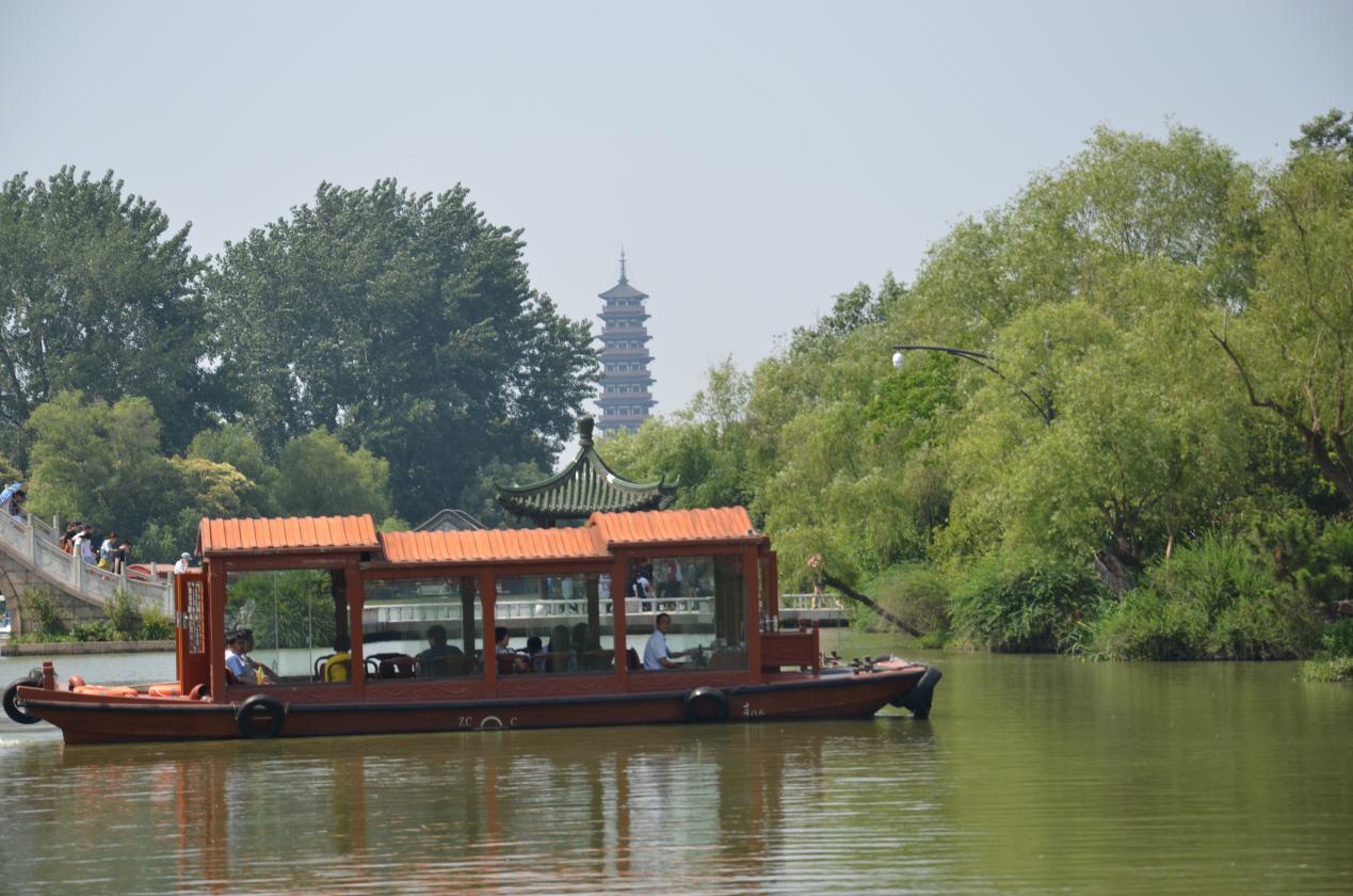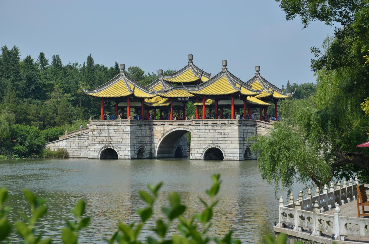 “故人西辭黃鶴樓,煙花三月下?lián)P州。”李白膾炙人口的千古絕唱平添了揚州這座古城名邑的無限風韻。我們雖未能見到揚州三月柳絮紛飛的美景,卻領略到了初夏時節(jié)揚州城的熱情。“天下西湖三十六,獨一無二瘦西湖”,來到揚州第一站,當仁不讓瘦西湖。是日藍天白云,一目千里,與周圍的美景同時映入眼簾,不經(jīng)意間就讓人心曠神怡。拍完景點的大合影之后,小伙伴們迫不及待地進入園區(qū),一邊聽導游講解一邊相互拍照留念,忙的不亦樂乎。園中景象以二十四橋、五亭橋、釣魚臺、小金山給人印象最深,以“枯木逢春”一景寓意最厚,不愧于古人對瘦西湖“瘦于外部的形態(tài),秀于內(nèi)在的神韻”的評價。