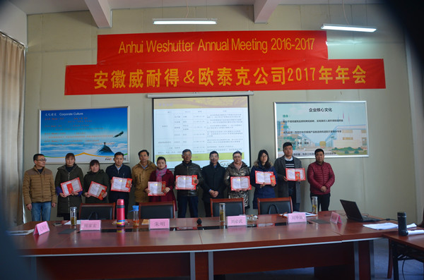安徽威耐得公司2017年度年會于2017年2月12日在公司長豐莊墓生產(chǎn)基地會議室隆重舉行。